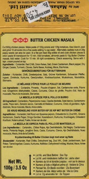- 40 g de mélange "Chicken Butter Masala" (compter 15 g pour 500 g de viande)